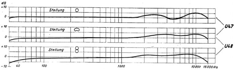 در برلین و در سال ۱۹۴۷، جورج نیومن میکروفن کاندنسر دو دیافراگم ضخیم U 47 را معرفی کرد. در U 47 از تیوب وکیوم VF14M استفاده شده بود که Telefunken آن ها را تولید می کرد و به همین دلیل لوگوی این کمپانی روی میکروفن قرار گرفت. حرف U در نام این میکروفن به کلمه ی آلمانی umschaltbar به معنای “قابل سوییچ شدن” ارجاع دارد، چرا که میکروفن U 47 اولین میکروفن کاندنسری بود که قابلیت تغییر الگوهای قطبی را فراهم کرد و دو الگوی قطبی چند جهته و سوپر کاردیود را به کاربران ارائه داد.