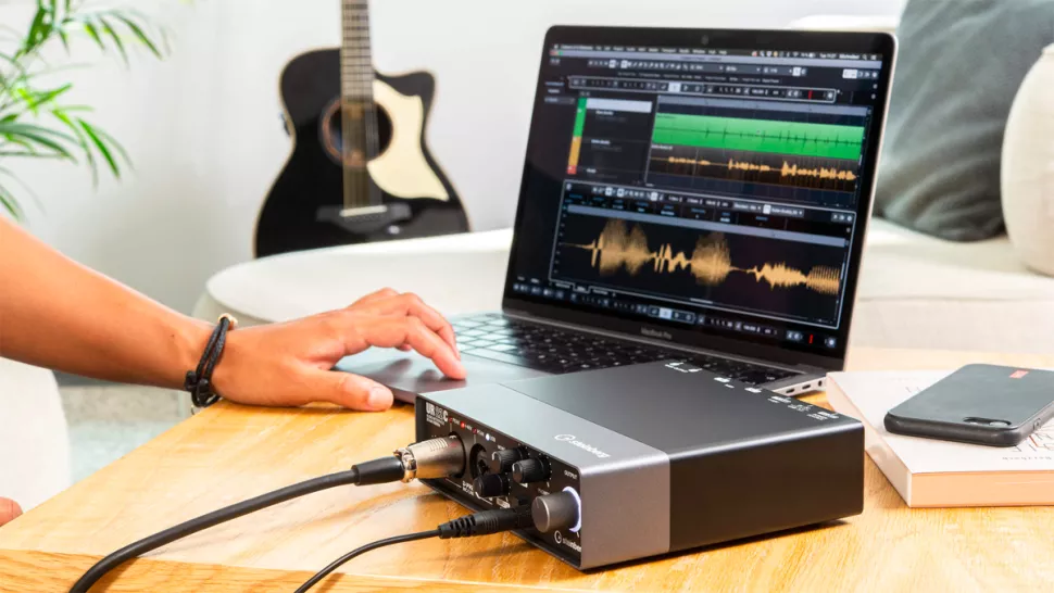 دو ورودی لاین و میکروفن کومبوی “XLR/1.4 با فانتوم پاور 48v برای این کارت صدا در نظر گرفته شده تا ضبط صدای میکروفن با کیفیت بالایی انجام شود. همچنین آپشن hi-Z به شما اجازه می دهد برای دومین کانال ورودی از سیگنال line یا instrument level استفاده کنید. روی پنل جلوی کارت صدا، کنترل هایی برای میکس وجود دارد که به شکل موثری لِول میان دو ورودی روی کارت صدا و صدایی که از نرم افزار آهنگسازی منتقل می شود را کنترل می کنند. آپشن Mono به شما اجازه می دهد ورودی چپ یا راست یا میکس مونوی هر دوی آن ها را گوش کنید. همچنین روی این پنل یک خروجی هدفون استودیویی با کنترل لِول آن قرار گرفته است.