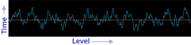 تصویر ۲B. شدت صدا در یک نرخ نمونه برداری مشخص اندازه گیری شده است.