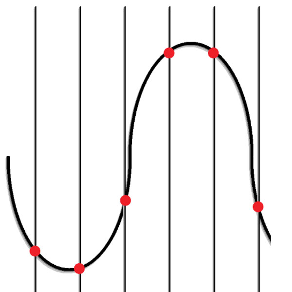 تصویر ۲C. هرکدام از سمپل های اندازه گیری شده با یک مقدار عددی تطبیق داده شده اند که این اعداد به عنوان دیتای دیجیتال ذخیره می شوند.