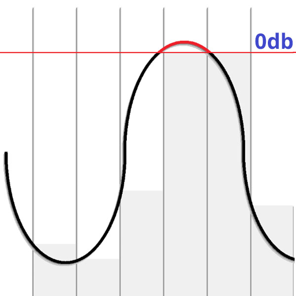 در زمان میکس، یکی از دلایلی که توصیه می شود حداقل چند دسی بل هدروم در خروجی مستر باقی بگذارید این است که در مسترینگ دیجیتال، شدت سمپل های صوتی دیجیتال اندازه گیری می شود؛ برگرداندن صدای دیجیتال به آنالوگ ممکن است باعث شود اعدادی بالاتر از خود سمپل ها ایجاد شود که این موضوع باعث ایجاد اینترسمپل دیستورشن (intersample distortion) می شود. (تصویر ۴)