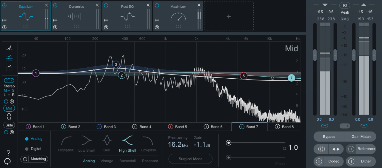 اگر میکس شما صدای ناواضح و اصطلاحا Muddy دارد، سعی کنید فرکانس های پایین در کانال side را با استفاده از یک فیلتر low shelf کاهش دهید. این کار به عنوان مثال می تواند به شما کمک کند فرکانس های پایین نامطلوب را در گیتارهایی که به سمت چپ یا راست pan شده اند حذف کنید و در عین حال وکال و Kick drum در مرکز میکس دست نخورده باقی بمانند.
